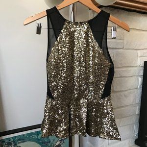 I love this top! I have broad shoulders and a small waist - this made me look GOOD! Still in excellent condition. Size would fit a small or medium.