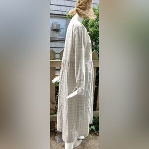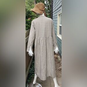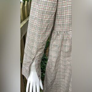 Serendipity Organic Cotton Dress. Unworn. Summer Light Cream Pastel Plaid Lg