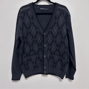 Sergio Louis Gray Argyle Men's XL Button Up cardigan grampacore academia v neck