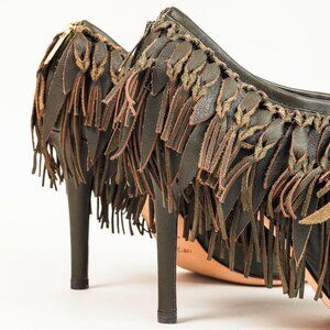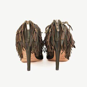 Sergio Rossi Green Leather Fringe Peep-Toe Bootie