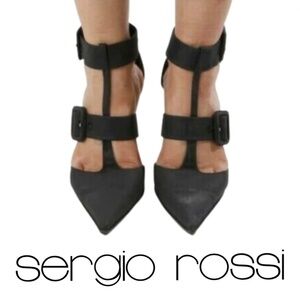 - Sergio Rossi Vero Cuoio Brown Double Buckle Heels