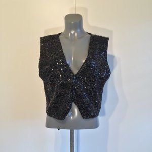 Serious Fun Sequined/Beaded Snap Button Front Vest Size M