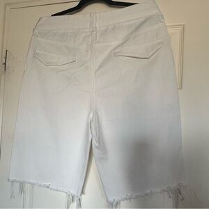 Serra by Joie Rucker "The Ballest" distressed twill bermuda shorts Better Cotton Initiative (BCI) Four-pocket style High rise Relaxed legs Concealed button/zip fly; belt loops Cotton/modal