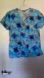 Sesame Street top, in very good condition - light wash wear. Short sleeve, v-neck design, cookie monster print, 3 pocket waist. Marked size small.