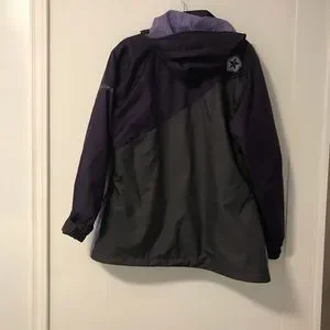 Multiple pockets, zipper whistle, waterproof, breathable, arm warmers with thumb hole. Comes with detachable vest (not pictured).