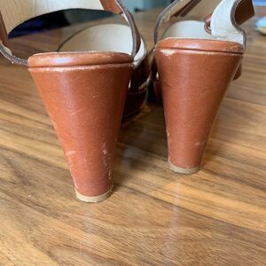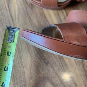 Sesto Meucci strappy wedge platform shoe/sandal, size 8 medium. Made in Italy, believed to be genuine leather but no stamp or label evident to verify. Side buckle entry at ankle to ensure firm and comfortable fit. Good used condition with some wear scuffs evident as per photos. Polishing would probably eliminate most: we have made no attempt to do so. This is your opportunity to own a recognized, high quality designer normally retailing for several hundreds new, at a deeply discounted price, but we won't tell!. Style it your way with additional finishing pieces from Our Closet (some suggestions shown all listed and priced separately), make a bundle, save a bundle. For the savvy fashionista in you, from Lemon Squeezy Shop🍋