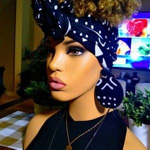 Set 2 Mudcloth Head Wrap + Earrings /African Print Head Wrap, African Head Wrap, Wrap Turban, African Headtie, Afrocentric Head wrap, Ankara HeadScarf
