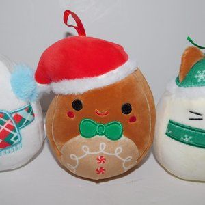 Set 3 Squishmallows Plush Christmas Ornaments Gingerbread Man Cat Snowman