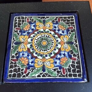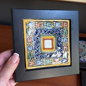 Set 3 Tonala hand painted vintage Mexican tile wall art/trivets h collectible