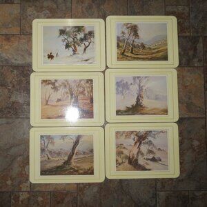 Set 6 Cork Back Tablemats Australian Landscapes Vintage (K714)