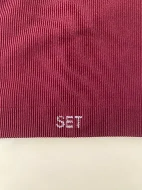 Set Active one-shoulder ribbed seamless sports crop top in a burgundy-wine colour. Lightly pre-worn but clean and in good condition. Size large measuring 12.5" at the underbust (unstretched). Fits more like a medium