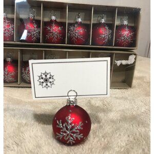 Set Of 12 Red Christmas Ball Place Card Ornaments With Snowflake Design 2"