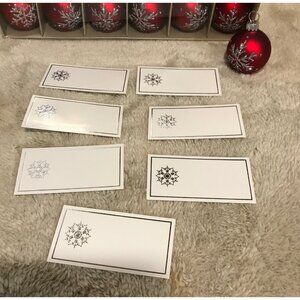 These elegant red Christmas ornaments feature a shimmering snowflake design, adding a festive touch to any holiday decor. Accompanied by matching place cards, they provide a cohesive and stylish addition to your holiday table settings. Made in China, these ornaments are crafted with attention to detail and quality.
