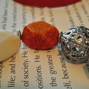 one stretchy bracelet comes cream beads and orange semiprecious stones very good condition