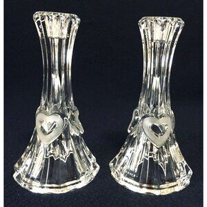 Lot Of 2 Evita crystal heart Candle Holders. Vintage . Made in Germany.