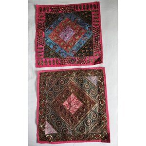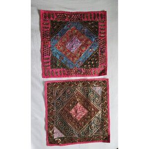 Enhance your living space with a touch of traditional Indian craftsmanship with this set of two handmade embroidered pillow covers. Each cover measures 16.5 x 16.5 inches, ideal for versatile use in any room of your home. The vibrant multicolor bohemian pattern brings a unique and artistic flair that effortlessly complements a variety of decor themes.