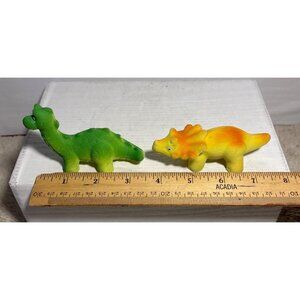 Set Of 2 Miniature Dinosaur Figurines Green & Yellow Spongy Texture Kids Toy