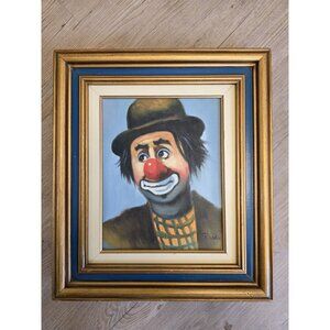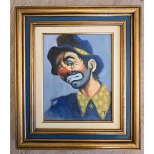 Set Of 2 Original Sad & Happy Clown Oil Paintings Signed Brodie Pro Framed MCM