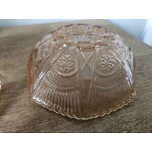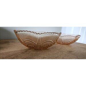 Set Of 2 Small And Medium Peach Coloured Depression Glass Bowls