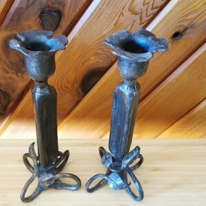 Set Of 2 Stoneware Candle Holders Blue/Grey And Tan