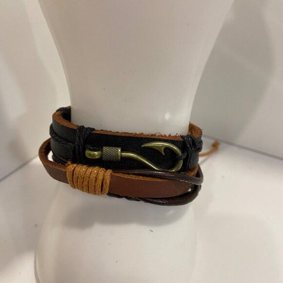 Item keywords: leather bracelet, fishing hook, nautical style, men's accessory, women's accessory, adjustable bracelet, brown bracelet, black bracelet, cord bracelet, rustic jewelry, boho style, unisex bracelet, gift idea, Fisherman gift, dad gift, brother present, fishing buddies gift, uncle present