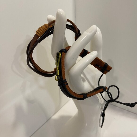 Set Of 2 genuine Leather & Cord Bracelets With funky Fishing Hook Design