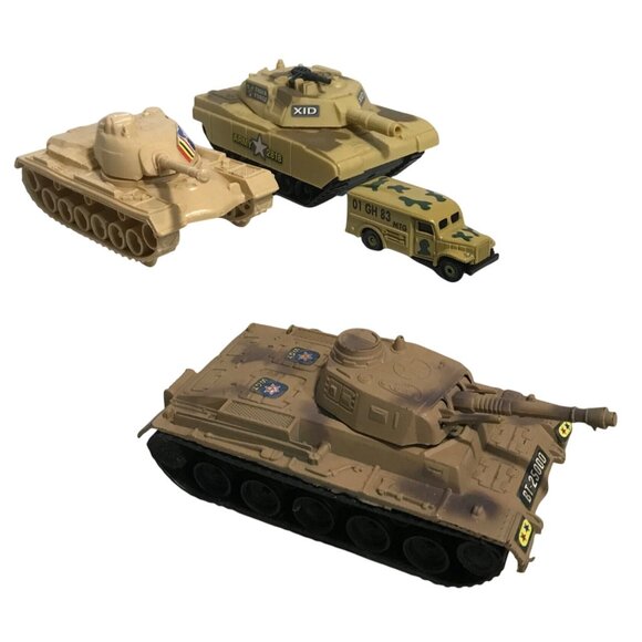 Set Of 3 Military Tanks & 1 Army Ambulance 1:72 Scale Toy Models Tan Plastic