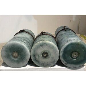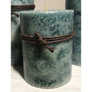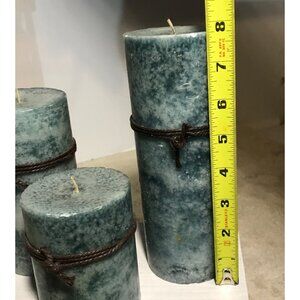 Set Of 3 Pillar Candles Handmade Rustic Blue Teal With Twine Accent Nautical