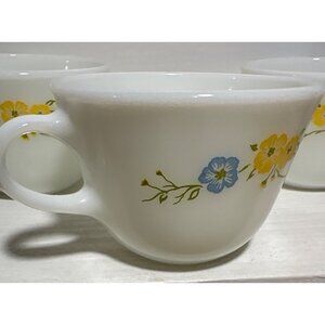 Set Of 3 Vintage Pyrex Coffee Tea Cups Yellow & Blue Floral Butterfly Design