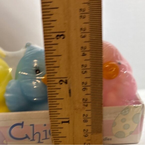 This set of three colorful Easter chick candles adds a whimsical touch to seasonal celebrations. Designed for decoration or burning, they are a charming centerpiece.