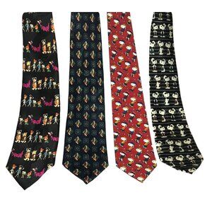 Set Of 4 Character Themed Novelty Ties Featuring Snoopy Flintstones & Tigger