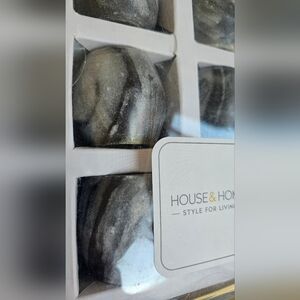 Set of six Genuine Marble Napkin Rings by House & Home. Elegant black and gray design. Brand New in box