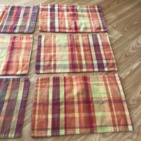 Set Of 6 Reversible Plaid & Solid Burgundy Placemats 11"x16" Cotton Fall Themed
