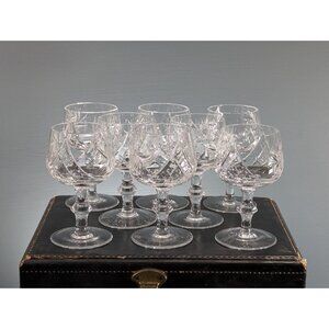 Set Of 8 Clear Pinwheel Crystal Wine Goblets, Bohemian European hand cut crystal