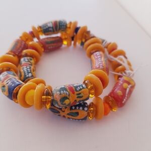 Set Of Two Bracelets Colorful Handpainted Beads