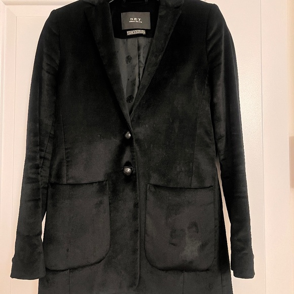 Black velvet blazer, made in Bulgarie, deluxe line from Set, size 34 ( us 2) very nice cut, in very good condition.