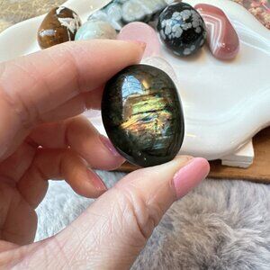 ♥ this set includes: ocean jasper, snowflake obsidian, rose quartz, green flower agate, clear quartz, apricot agate, amethyst, brecciated jasper, labradorite, and rutilated quartz