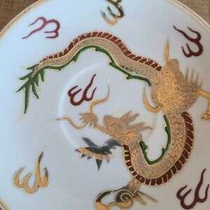 Set of 2 1940s Dragonware Kutani porcelain saucers with dragons design.