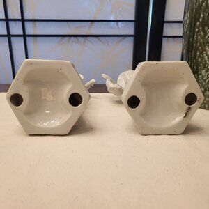 Set of 2 -70's Chinese White Porcelain Farmer with Hat Carrying Yoke Statue
