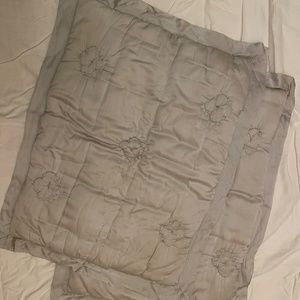 Two large decorative pillow covers, fit the pillows of a queen or double bed well. They are silky, soft, with subtle little flower detail. They're a bit of a silver/grey/blue ish colour. Bought a few years ago, just don't go with my decor anymore. Covers only, pillow/insert not included.