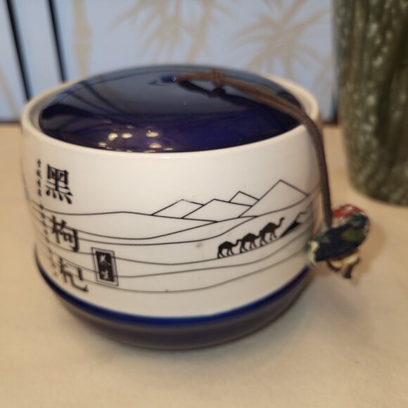 Set of 2 Asian Porcelain Tea Caddys Goji Berry Storage Pots w/ Tassels