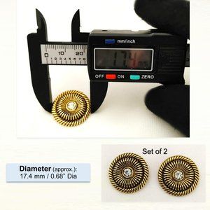 Set of 2 Brass Rope Style Metal Button Round Vintage Gold Shank Clear Stone 17mm