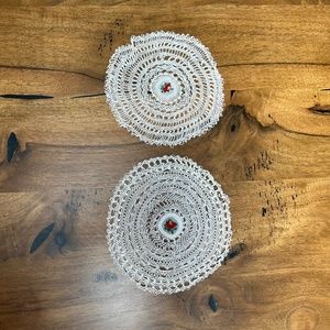 Hand Knit set of 2 Circle Round Floral Doily Tablecloth