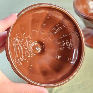 These two brown ceramic pre-owned dishes are in great condition with no visible damages or flaws. Please look at all photos. These are about 3.5" tall and about 5" in diameter. These will be packages securely for shipping. Come from smoke free and pet friendly home.