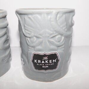 Set of 2 Kraken Spiced Rum Gray 4" Tiki Octopus Ceramic Mug Tumbler