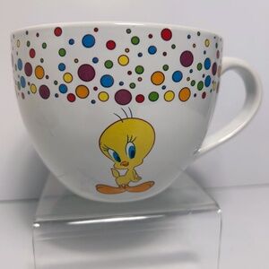 Large capacity mugs for hot beverages or soup. Warner Brothers Tweety Bird character with polka dots.