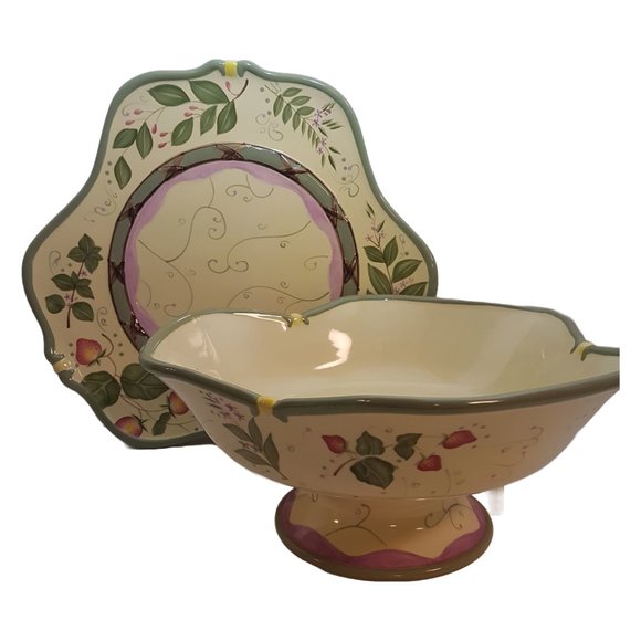 Set of 2 PARTYLITE Garden Lites Strawberry Pedestal Bowl and Plate P8095, P8096