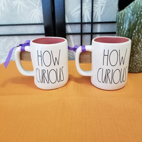 Elevate your morning coffee routine with this charming Set of 2 Rae Dunn Disney Cheshire Cat HOW CURIOUS Double Sided Mugs in white with a delightful pink interior. These mugs are sure to bring a touch of whimsy to your kitchen and are a must-have for fans of Disney and Rae Dunn alike. Add a touch of magic to your kitchen with this delightful Disney-themed set!