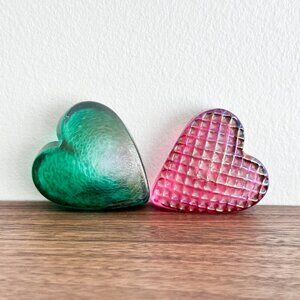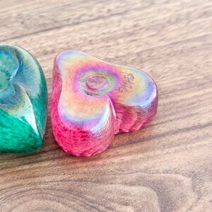 Set of 2 Signed Robert Held Glass Heart Paperweights