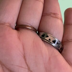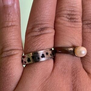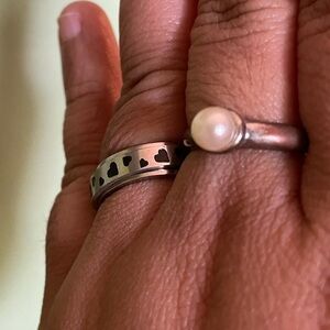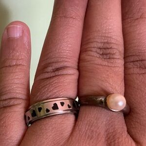 Set of 2 Silver Pearl Ring and Silver Heart Ring Set